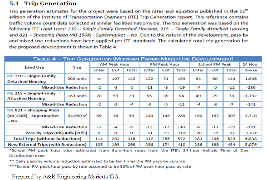 FINDING: The proposed mixed development will add increased use to existing infrastructure and facilities. The applicant is proposing 203 single family units, 163 townhomes and 54,950 sf of commercial space. The traffic study report states that there will be a total of 298 A.M. peak hour trips, 410 P.M. peak hour trips and 434 school P.M. peak hour trips. If the development is developed with recommended conditions this should reduce any excessive burdens on the area. While the City of Covington has indicated that they have sewer in the vicinity the developer will be responsible for the cost of sewer connectivity.